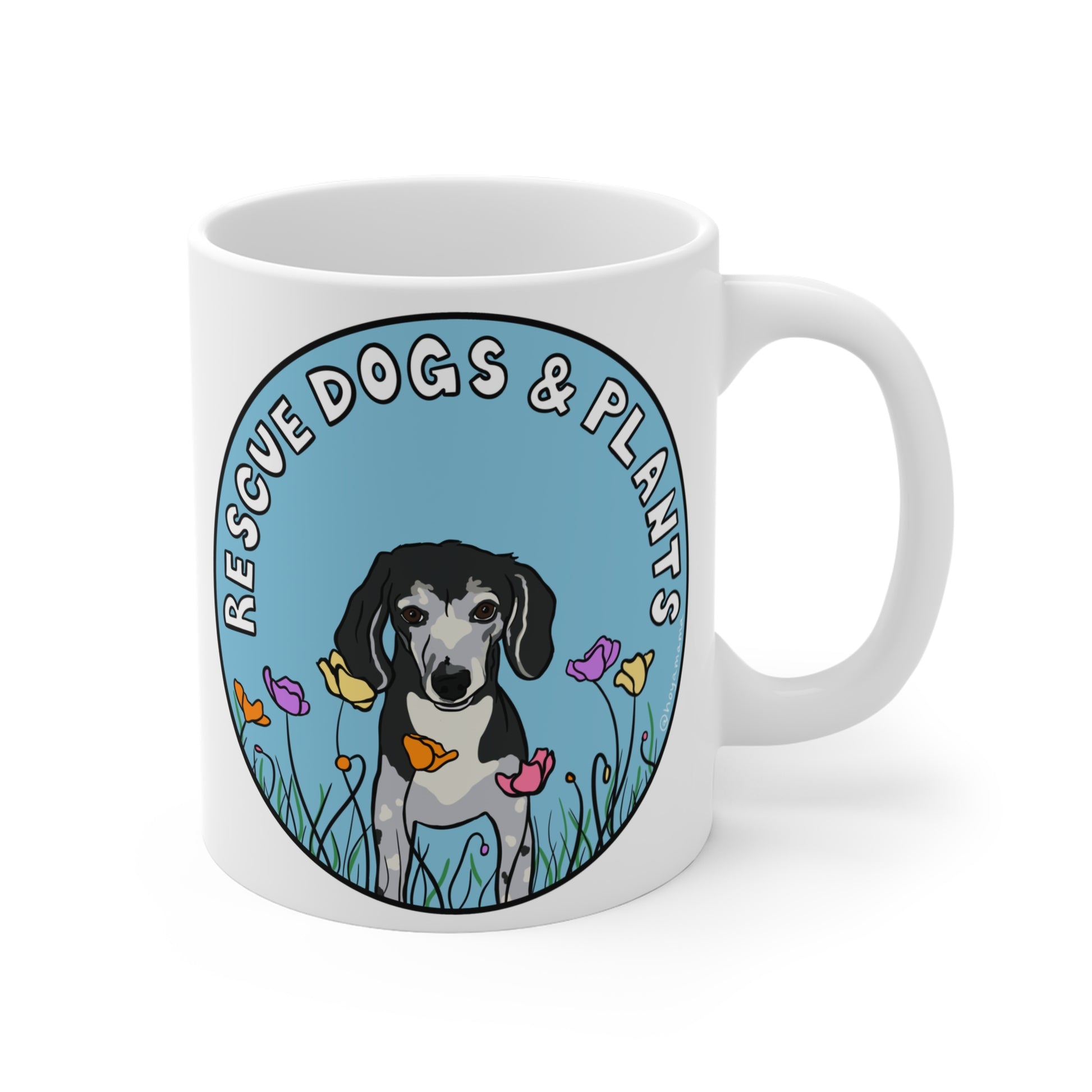 This beautiful Mug features an original design of a rescue dog and flowers making it perfect for dog and plant lovers. Enjoy your coffee or tea with this vibrant design. The 11oz ceramic mug is BPA and lead-free, microwave and dishwasher safe, with rounded corners and a C-handle. Ideal gift for coffee, tea, and plant enthusiasts, collect all the designs!