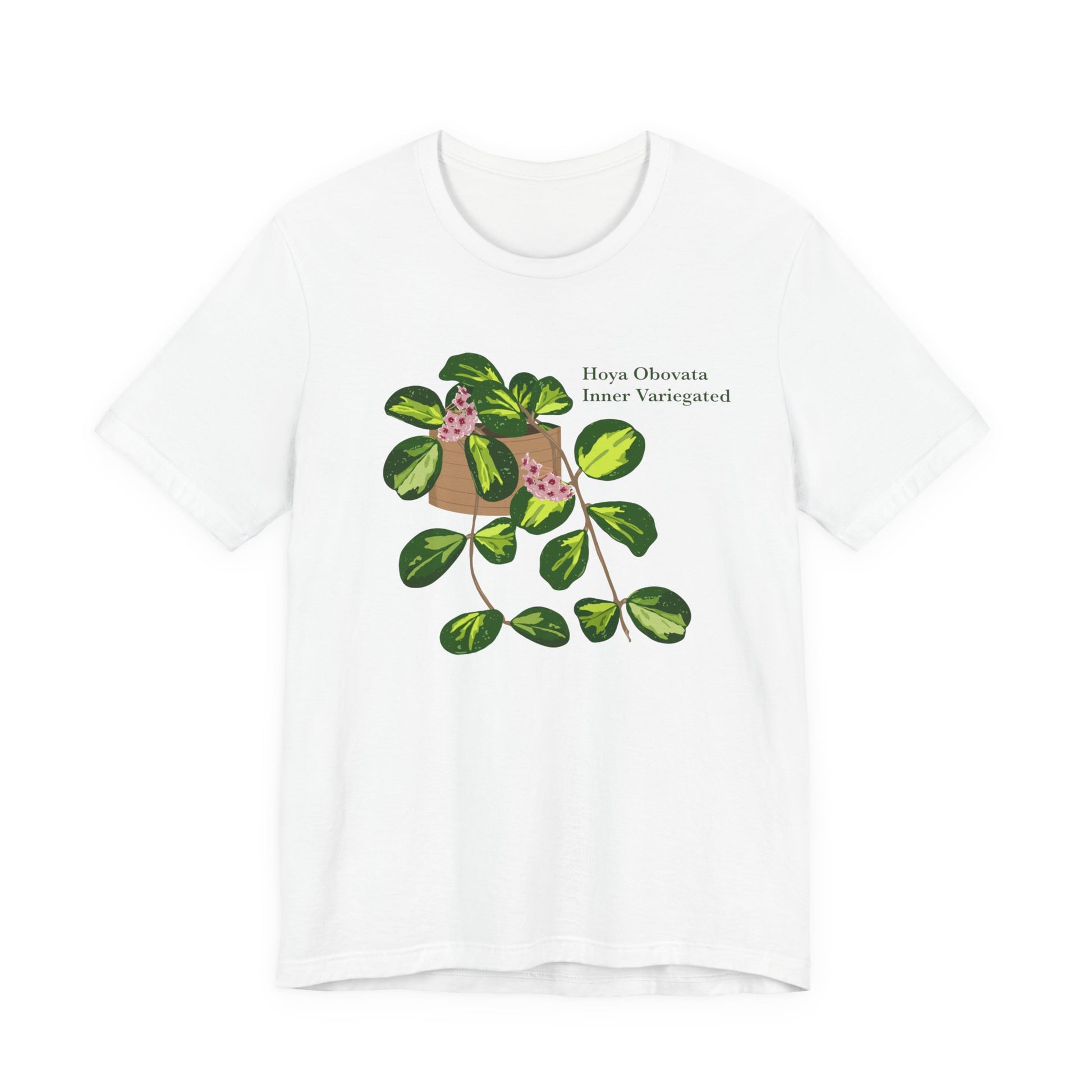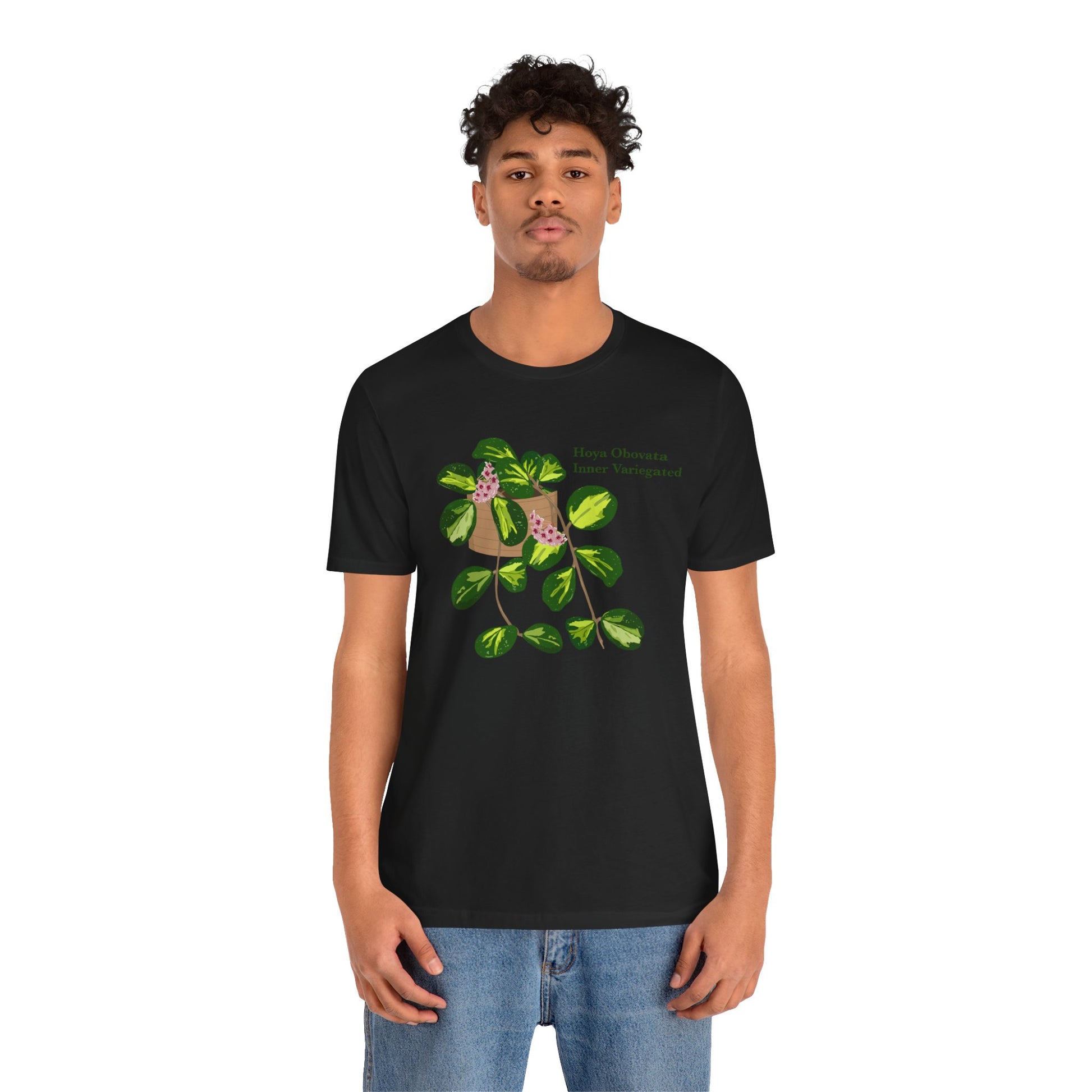 Your new favorite tee features a colorful original design of a Hoya Obovata Inner Variegated plant. This T-shirt is a perfect gift for that plant loving family members and friends. Let the world know that you love plants! This classic unisex jersey short sleeve tee fits like a well-loved favorite. Soft cotton and quality print make users fall in love with it over and over again.