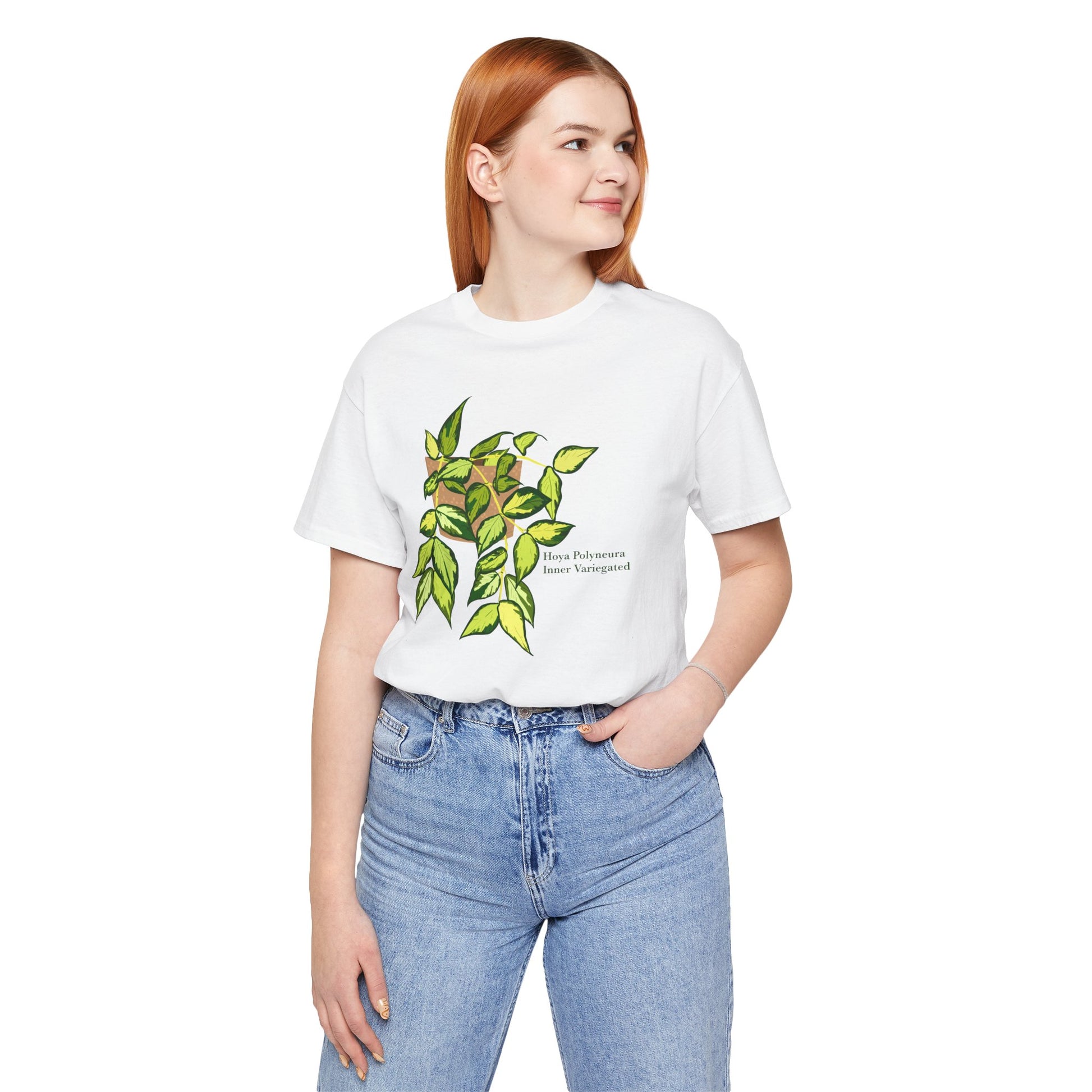 Your new favorite tee features a colorful original design of a Hoya Polyneura Inner Variegated plant. This T-shirt is a perfect gift for that plant loving family members and friends. Let the world know that you love plants! This classic unisex jersey short sleeve tee fits like a well-loved favorite. Soft cotton and quality print make users fall in love with it over and over again.
