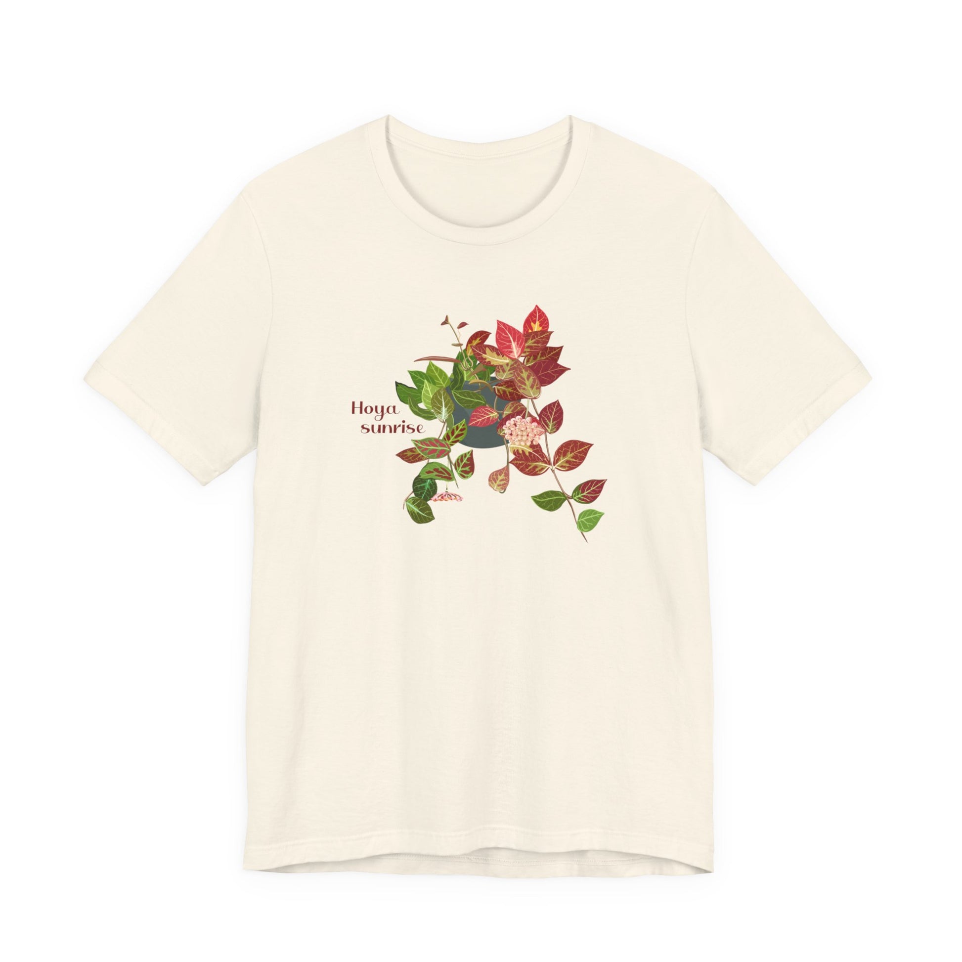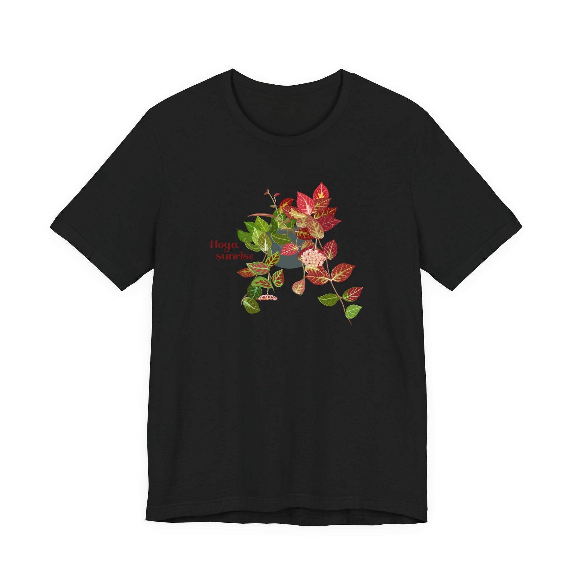 Original design of Hoya Sunrise T-shirt, perfect for plant lovers. Give this soft and comfortable unisex jersey tee as a gift to family and friends. Suitable for casual wear and layering, it features ribbed knit collar, shoulder tape, tear-away label, and retail fit. Made with 100% Airlume combed and ring-spun cotton, lightweight and breathable.