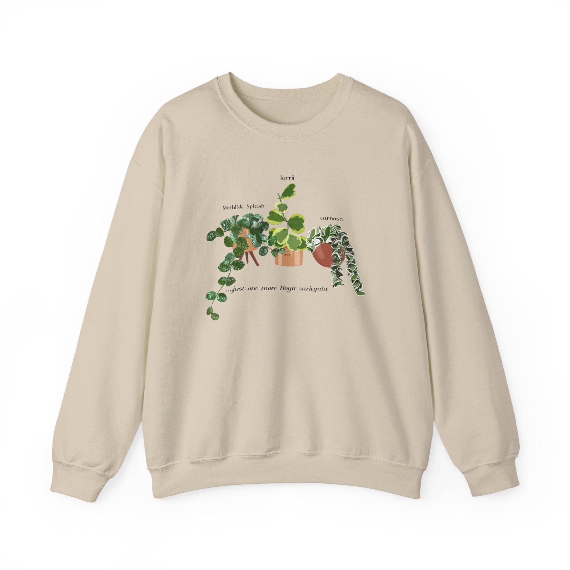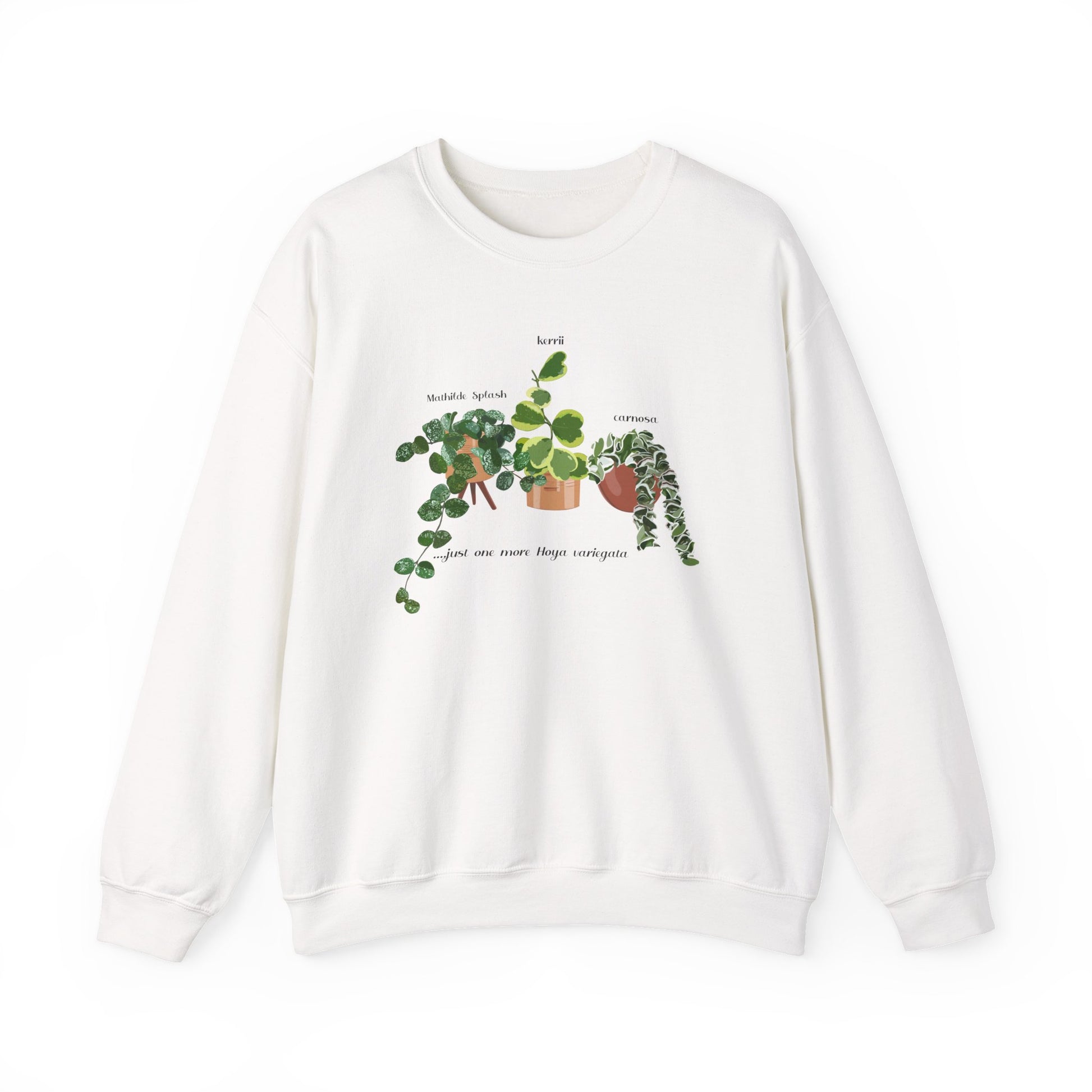 A beautiful original design of Hoya Mathilde Splash, Kerrii Variegata and Carnosa Hindu Rope adorns this cozy unisex heavy blend crewneck sweatshirt, making it the perfect gift for Monstera lovers, plant moms/dads, and gardeners. Ideal for any situation, this sweatshirt offers pure comfort and a loose fit. It is relevant for holidays, birthdays, or any occasion for those who appreciate unique plant designs.