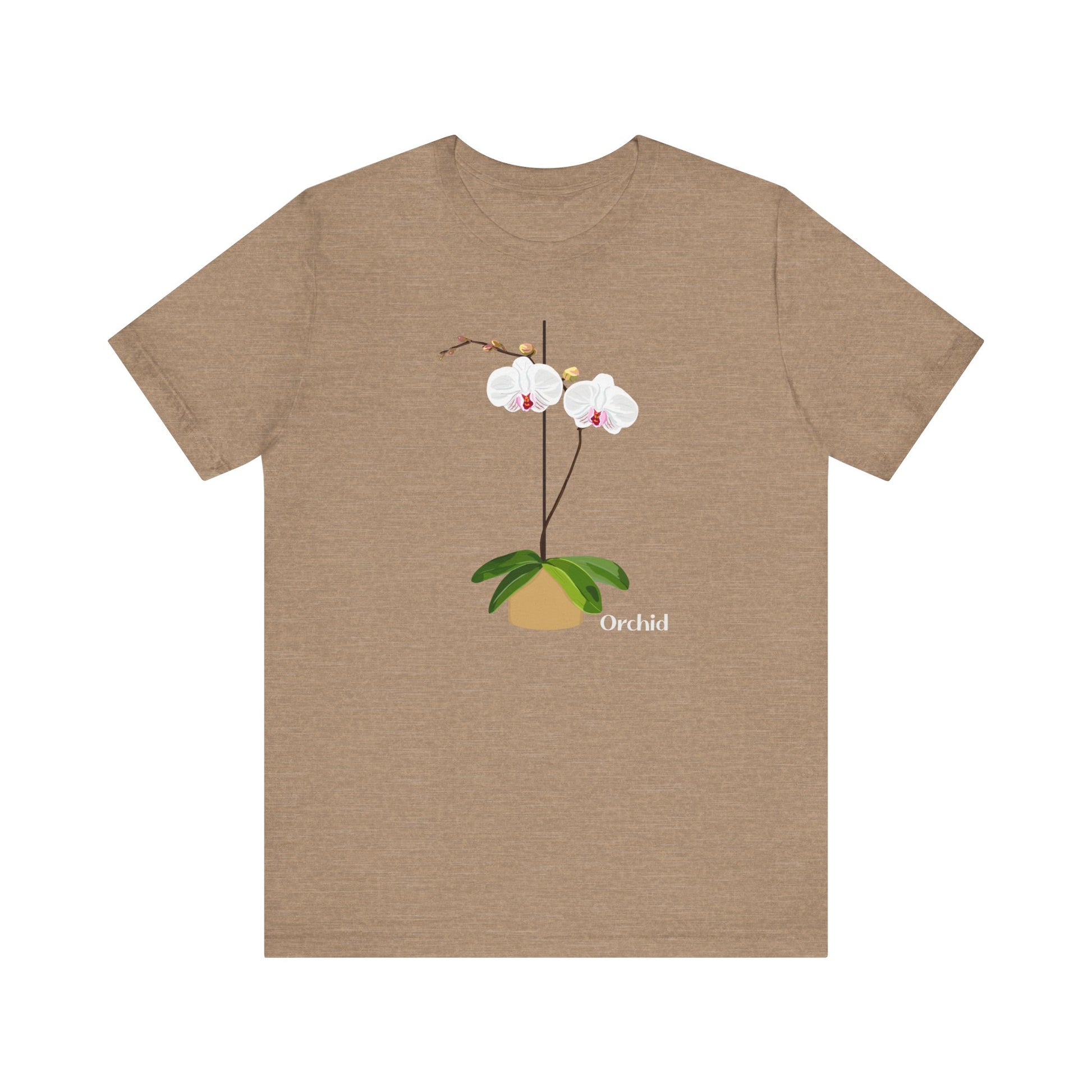 White Orchid T-Shirt for Plant and Flower Lovers - Tan, Mauve, Purple or Blue
