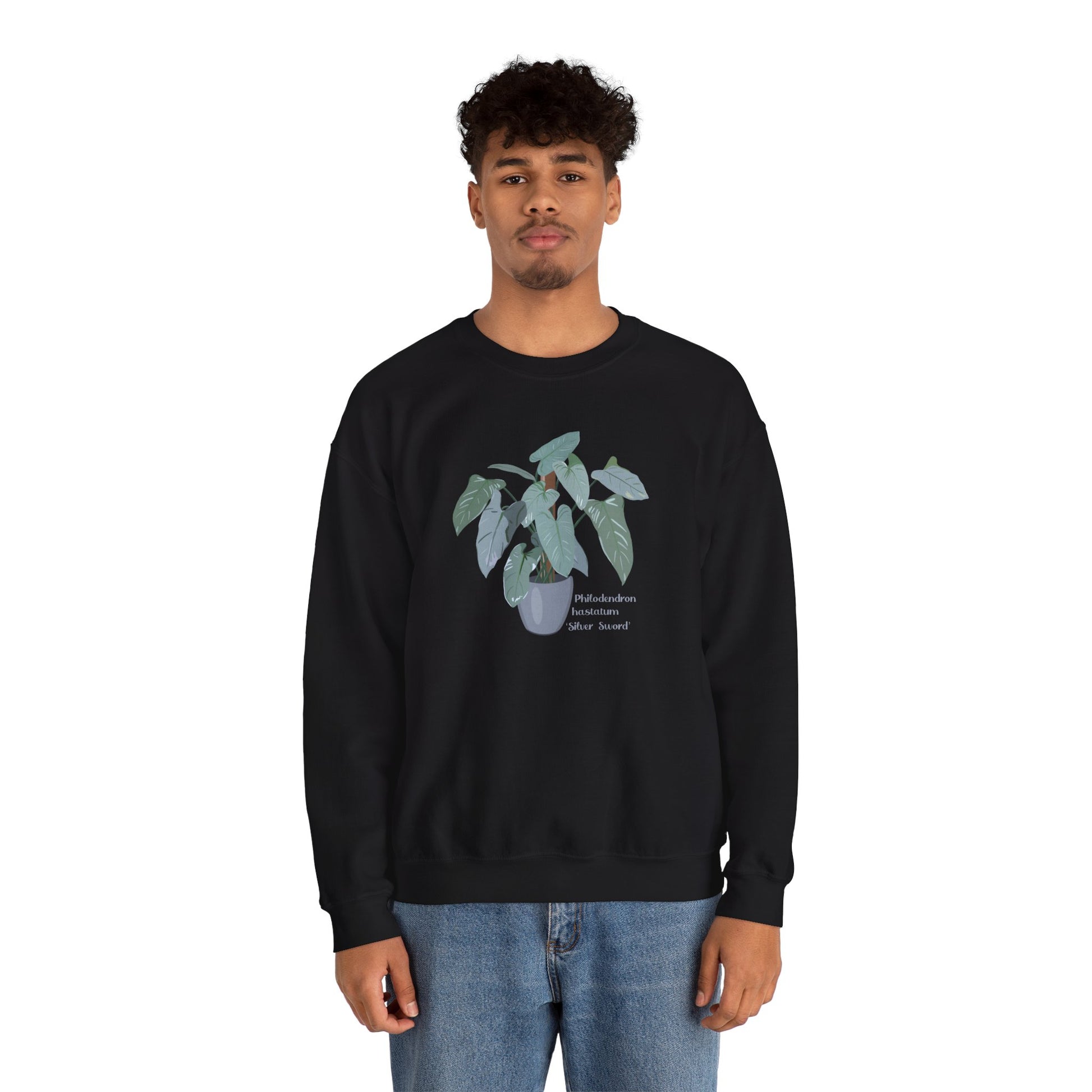 A beautiful original design of Philodendron Hastatum Silver Sword adorns this cozy unisex heavy blend crewneck sweatshirt, making it the perfect gift for Monstera lovers, plant moms/dads, and gardeners. Ideal for any situation, this sweatshirt offers pure comfort and a loose fit. It is relevant for holidays, birthdays, or any occasion for those who appreciate unique plant designs.