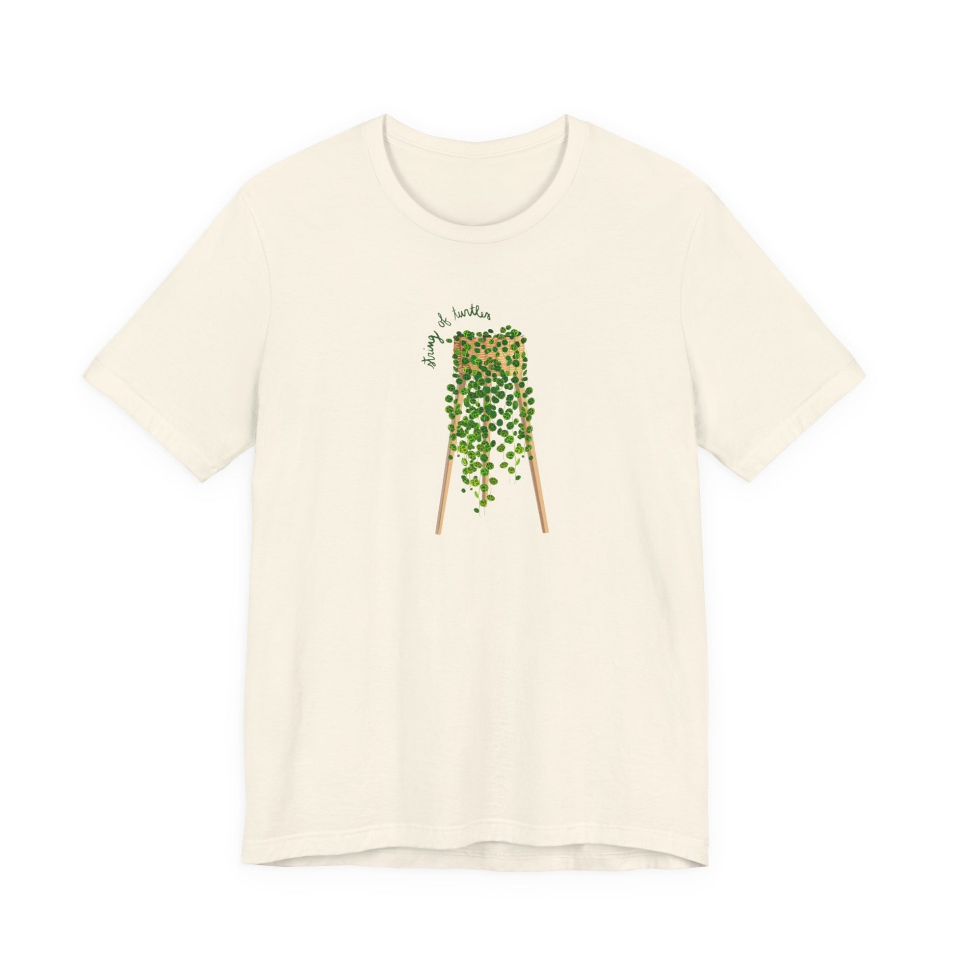 Beautiful original design of String of Turtles! Perfect gift for that plant loving family members and friends. Let the world know that you love plants! Give yourself a gift! This classic unisex jersey short sleeve tee fits like a well-loved favorite. Soft cotton and quality print make users fall in love with it over and over again.